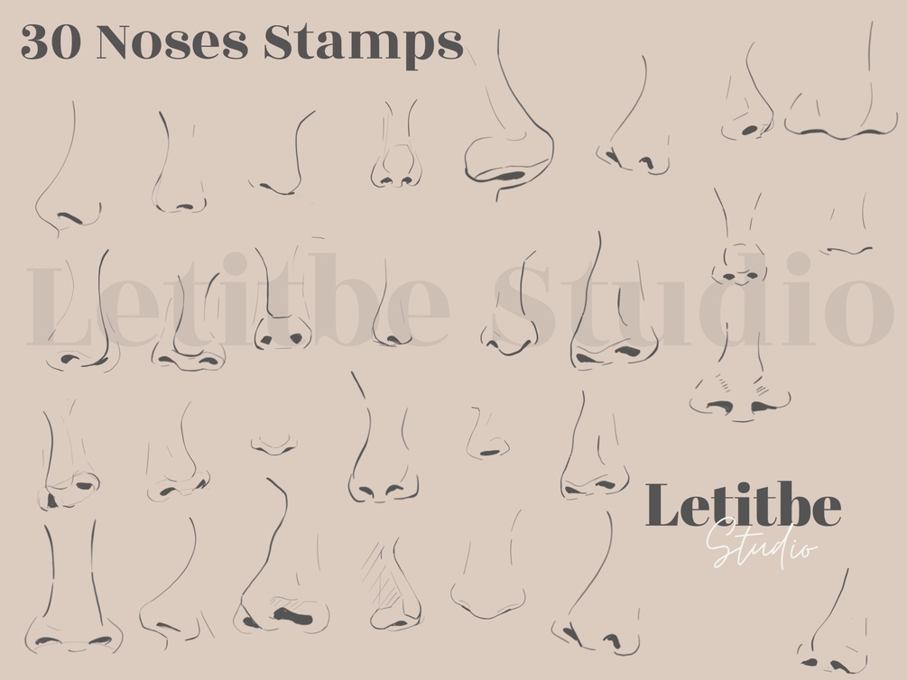 48 Procreate Eye and Eyelashes stamps 10 Procreate Eye Brows Stamps 30 Lips Stamps 30 Noses Stamps